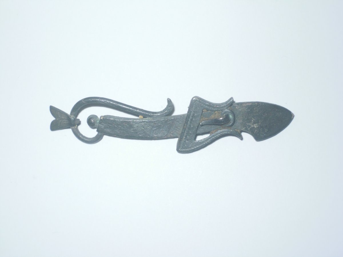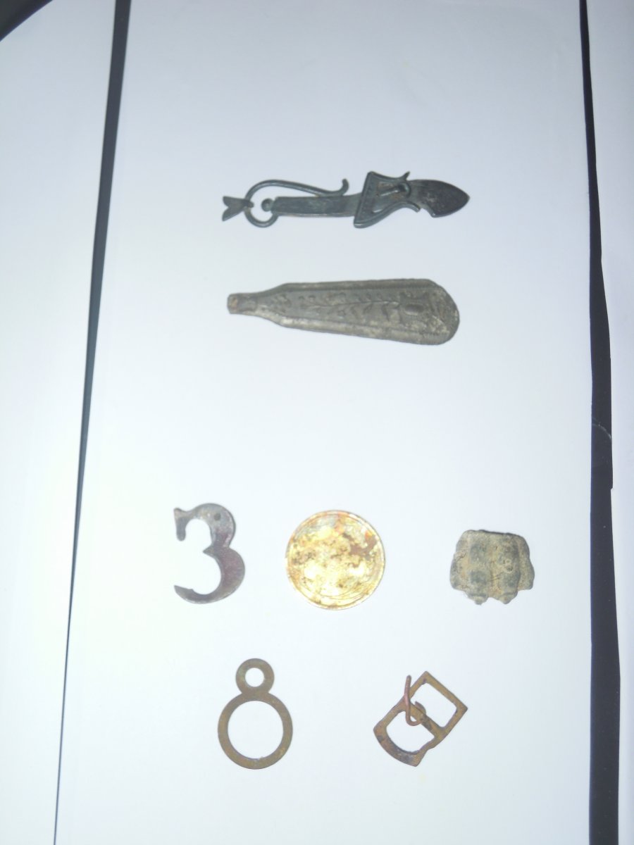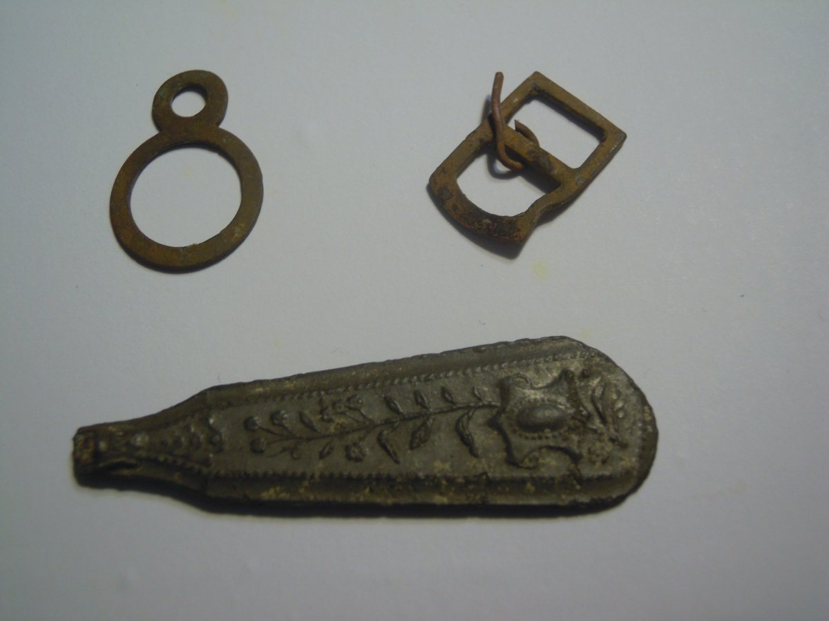 1. Невідома але дуже гарна і густоорнаментована річ. Робоча теорія - брошка, АЛЕ нема слідів кріплення застібки. Матеріал - білий метал із темною патиною, можливо срібло