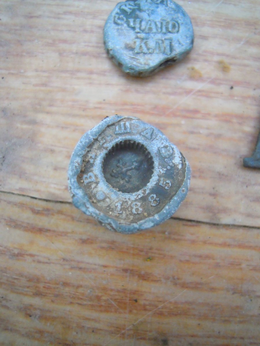 І незрозумілий латунний предмет з латинськими літерами і цифрою 4 або руною "S"(ну про руну, це моя хвора фантазія)