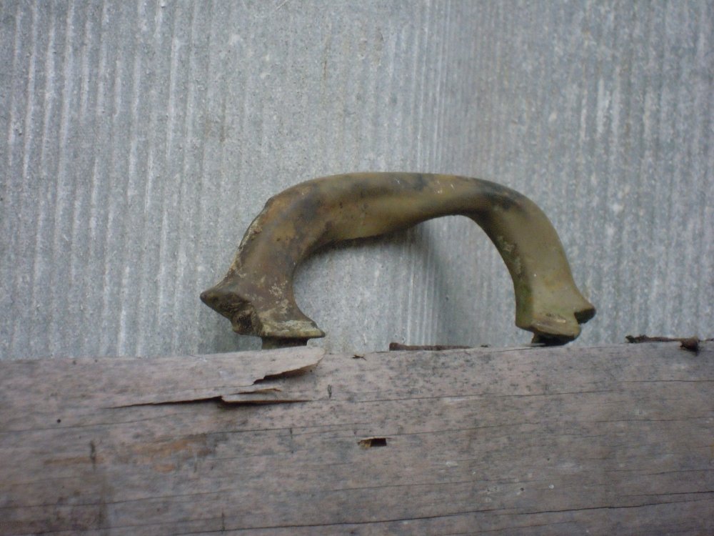 вчорашній заплив: 1. ручка з сундука або що 2. чугунна табличка з німецькими словами в два ряди: "...Vu VO..." другий ряд "RÄTE FAB" 3. Раніше зустрівані приблуди 4. гвинт з квадратною основою і заокругленим початком 5. Щось коване, схоже на шмат лавки 6. Замок 7. Велика шестерня(важка зараза) 8. обід для домового водостоку 9. гільза 7,92 10. підкова сапога 11. старий ніж 12. зсов для дверей з латунною основою(не бідна штука)