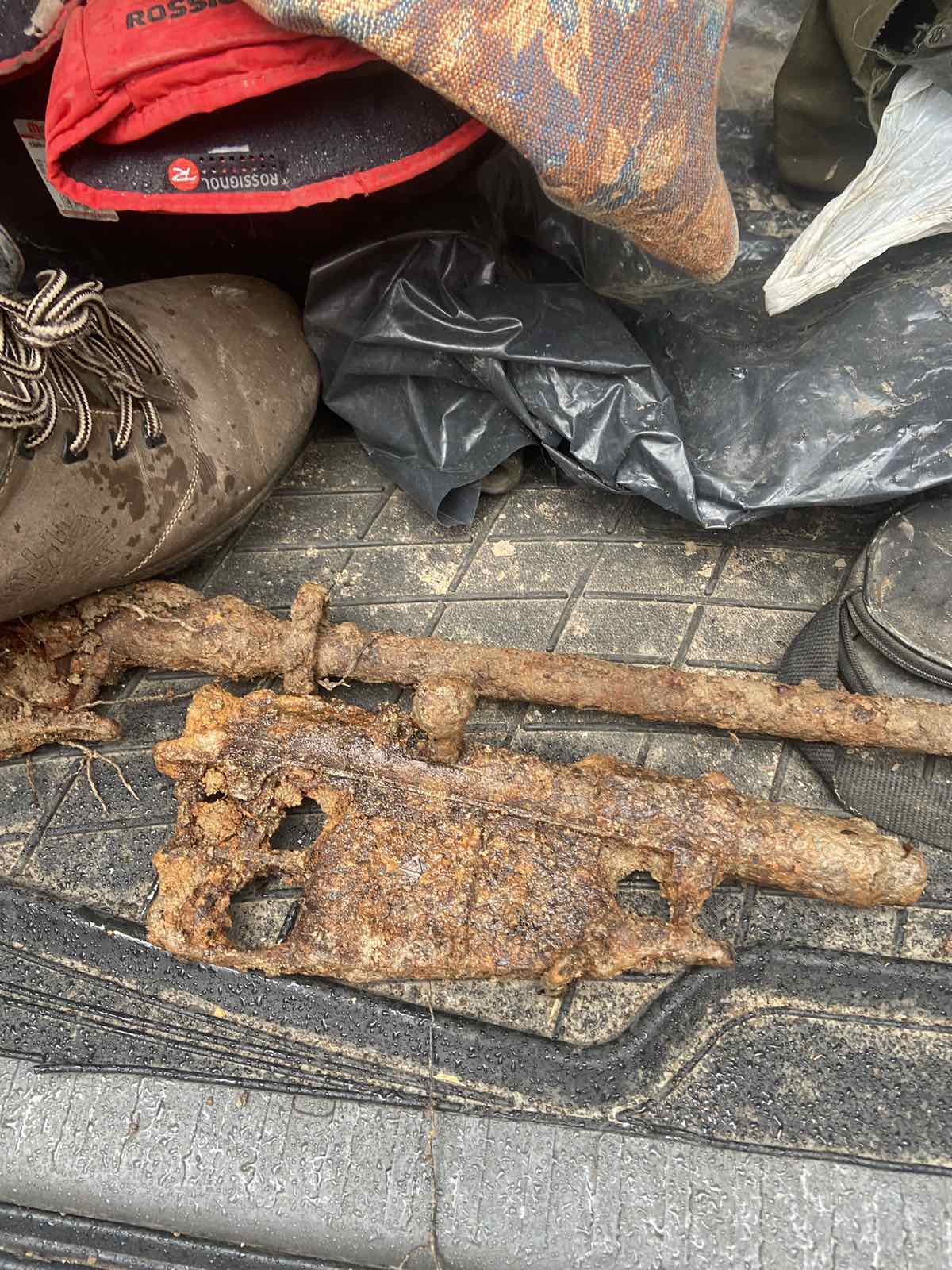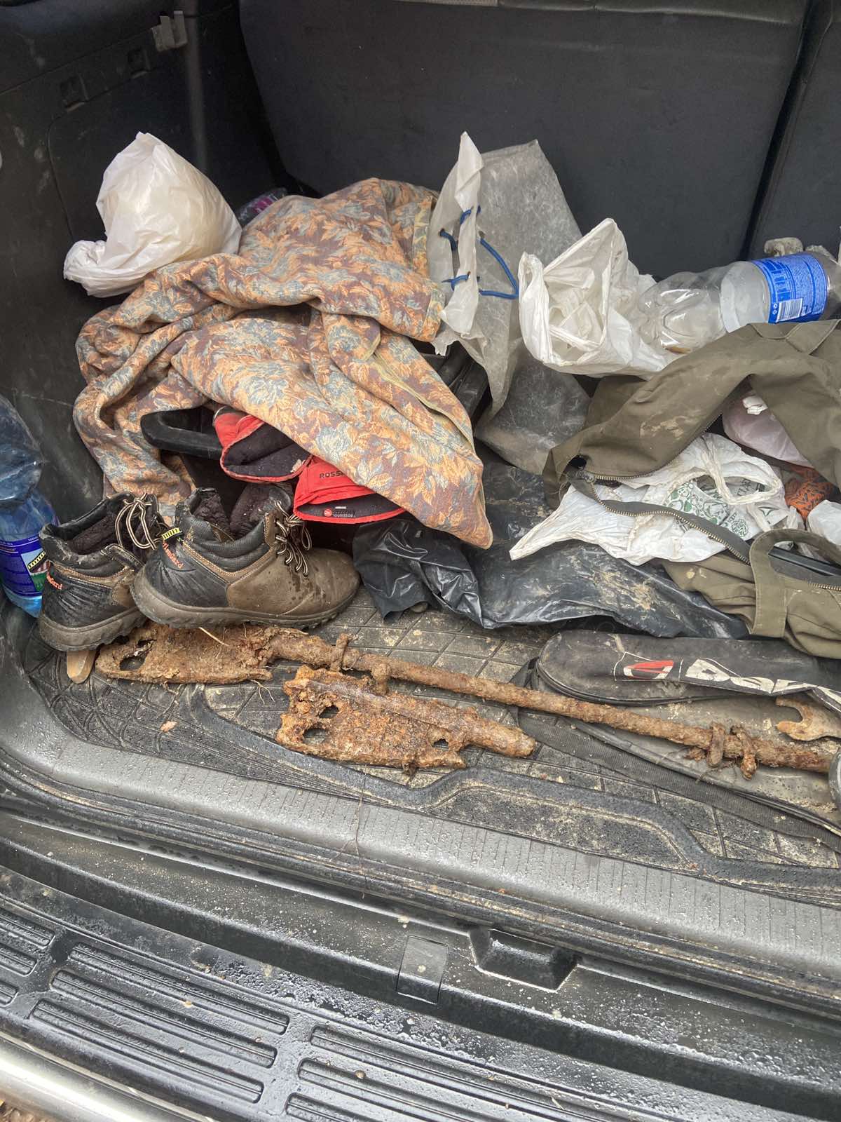 Пляшки від Пепсі та мінводи, зимові боти,перчатки,поліетиленові пакети,залишки гвинтівок Мосіна,гайковий ключ,сумки та інший хлам.