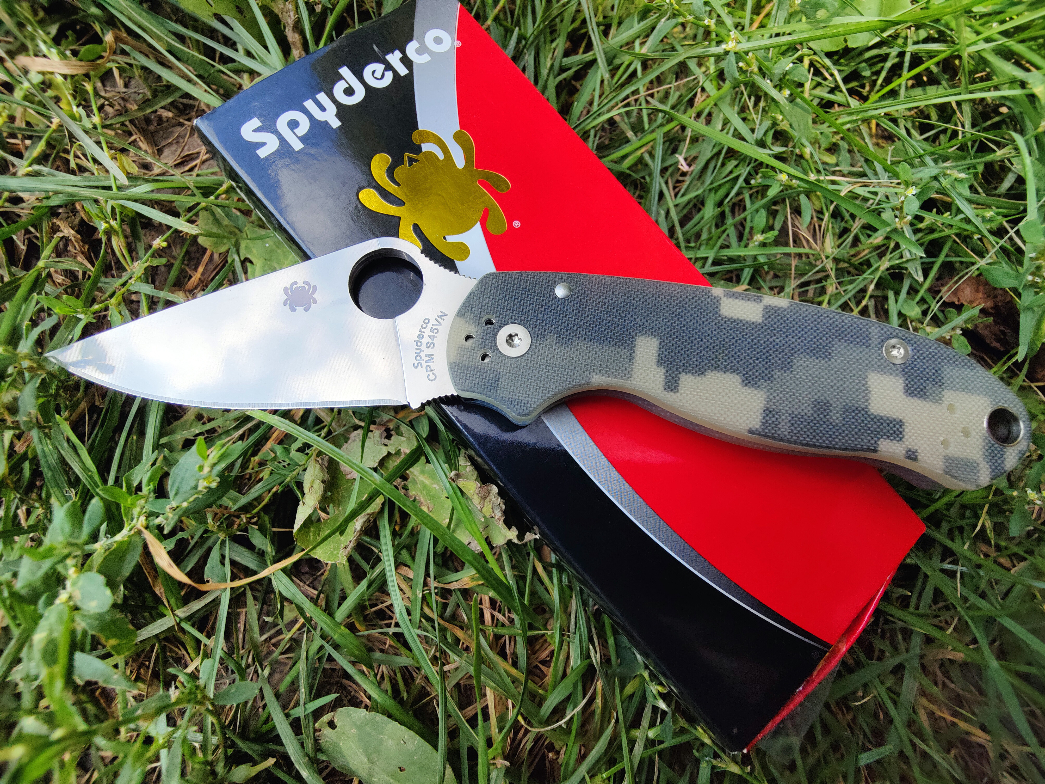 -Spyderco Military Digital Camo G-10 Black S30V