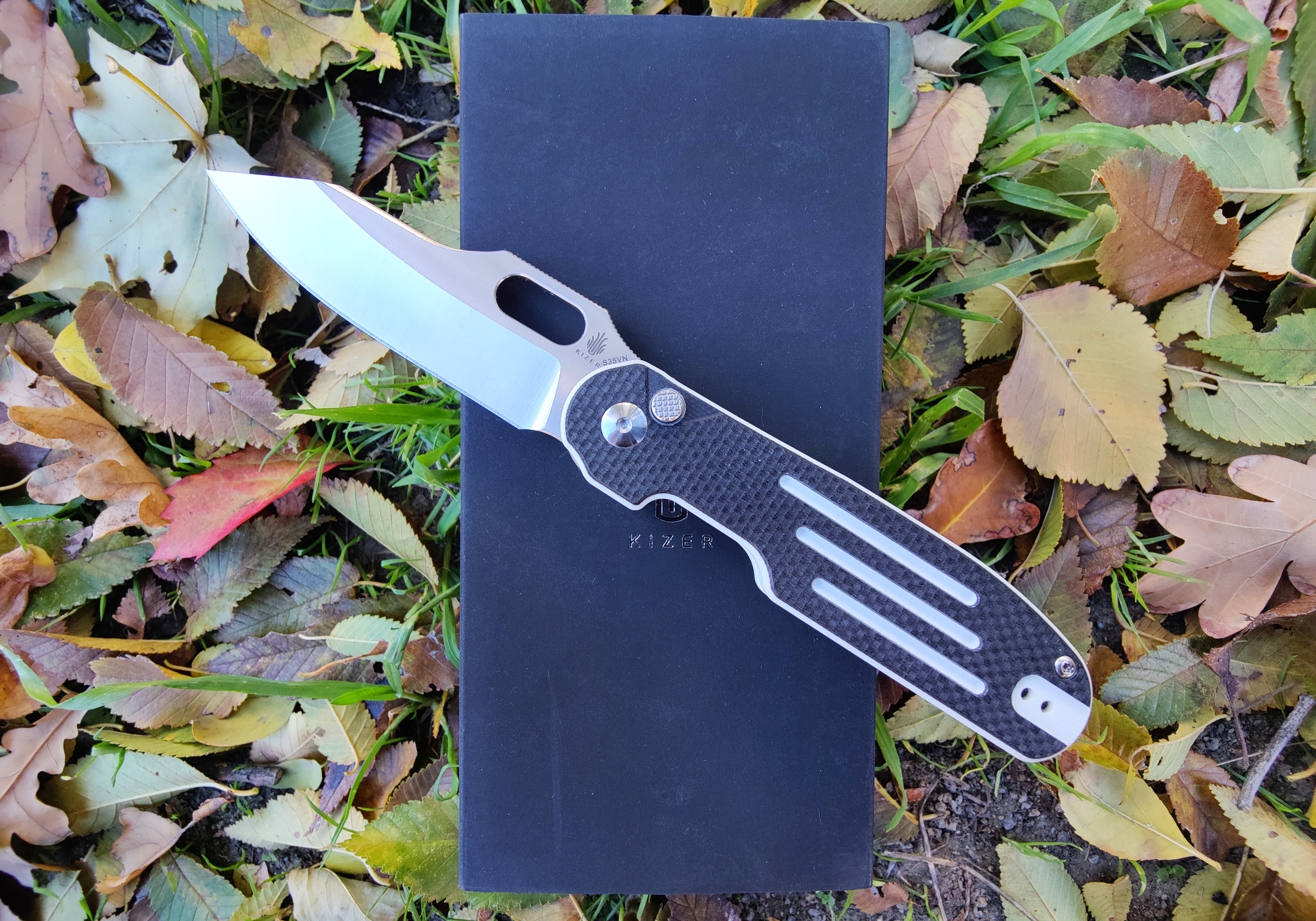 -Kizer Cormorant Black/White Lines G-10 (3.25" Satin S35VN)