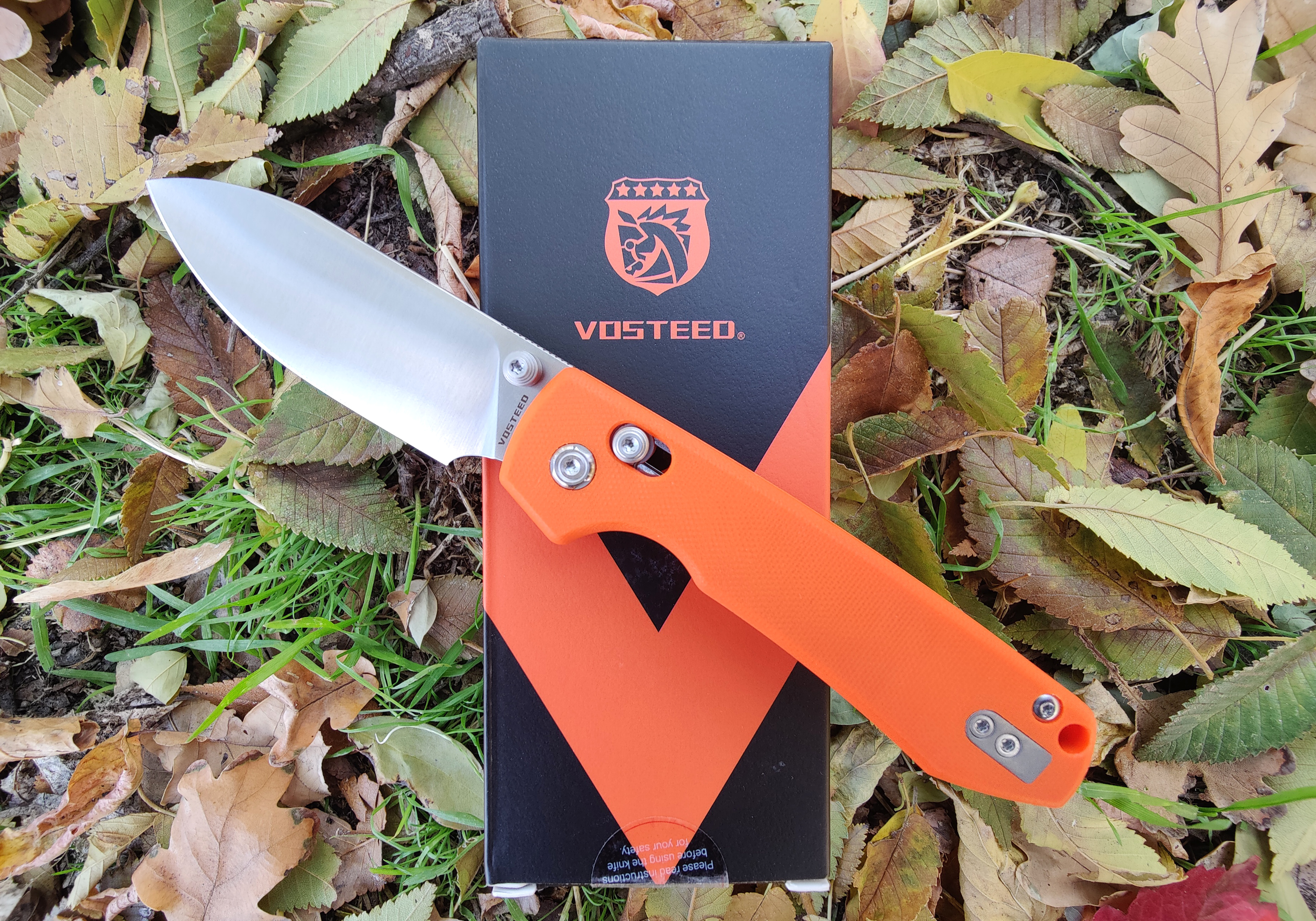 -Vosteed Raccoon Drop Point Crossbar Lock Orange G-10 (3.4" Satin)