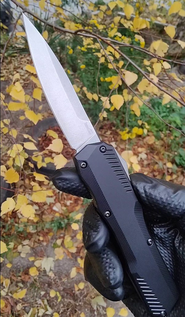 -Kershaw OTF Livewire MagnaCut D/A Automatic Knife Black (3.4" Stonewash) 9000