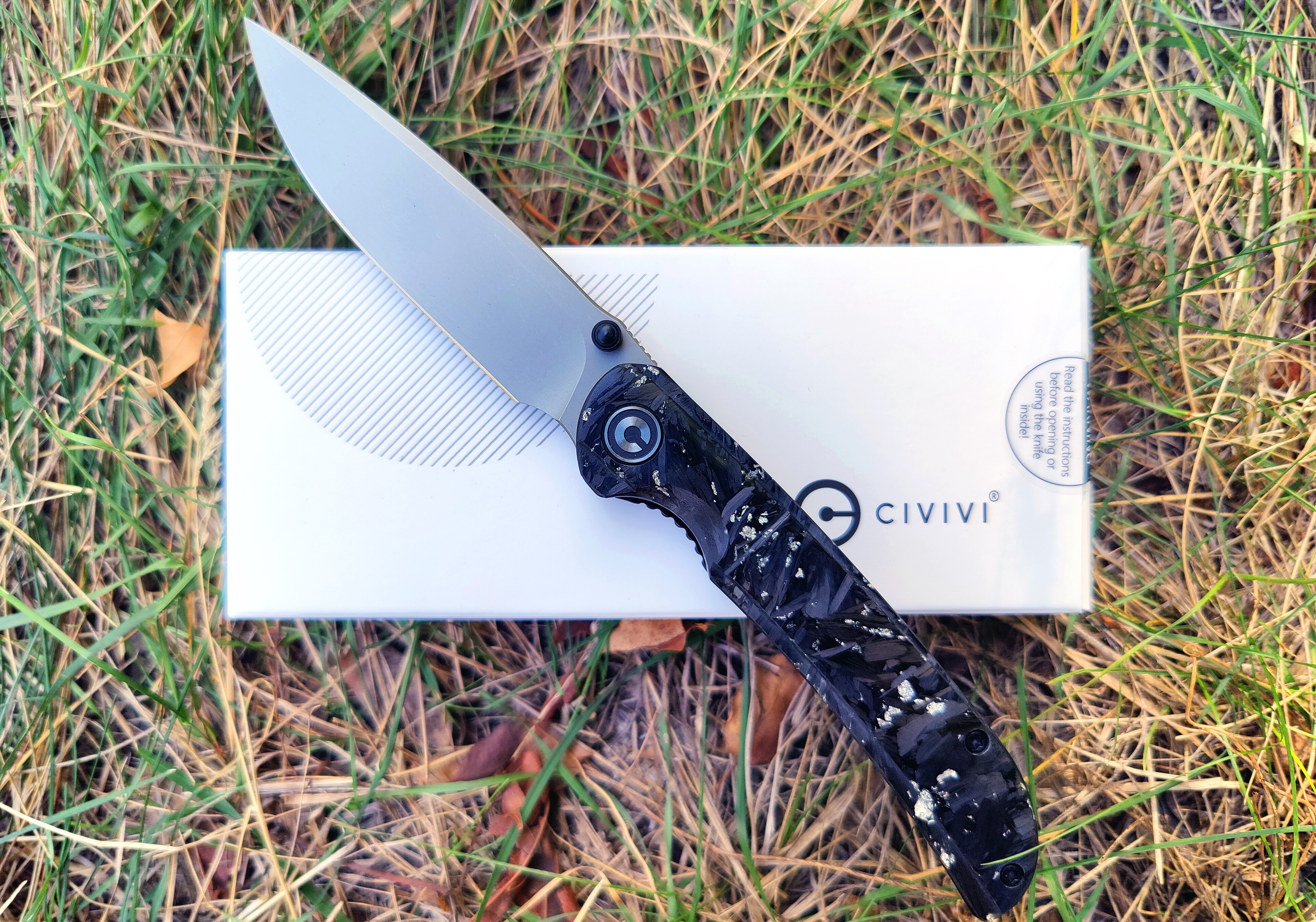 -Civivi Imperium Liner Lock Shredded CF/Silver (3.5" Nitro-V)