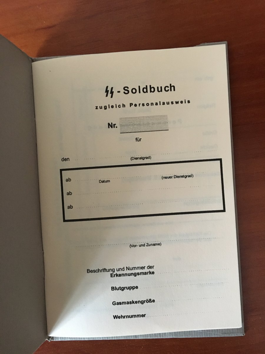 Зольдбух для Войск СС на 32стр.-75гр. Штурмовой знак в серебре -150 гр.