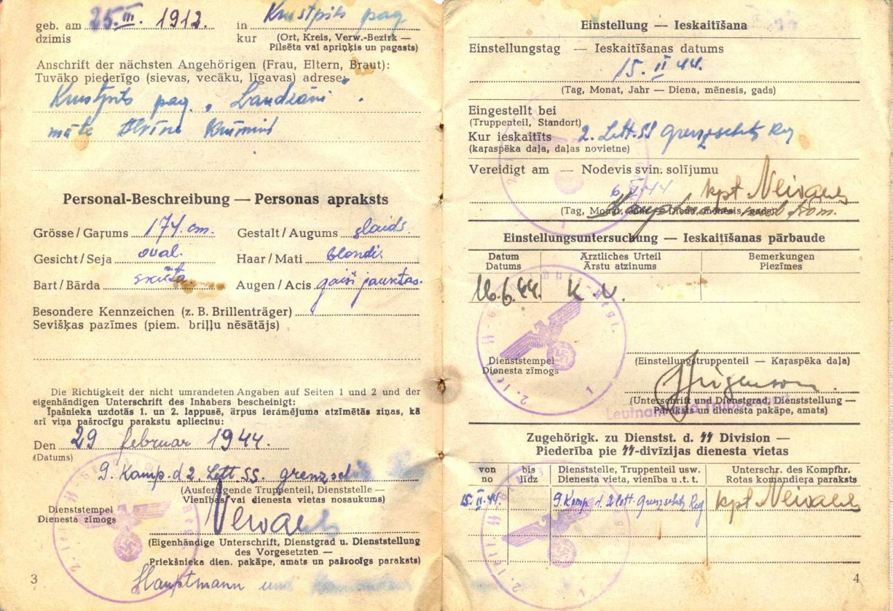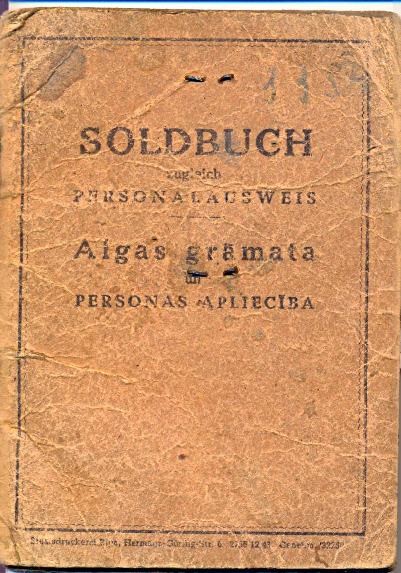 Если не в тему, модератор может перенести в раздел бухи (если она здесь есть), подраздел бухи иностранных формирований Вермахта (если он здесь есть). И вообще у вас здесь ребята бухи, пассы, родословные, наградные доки, просто доки, автографы и вся бумага Рейха и Вермахта разбросаны по всему форуму. Нехорошо так с документальными свидетельствами эпохи... И ещё один латвиец на последок: