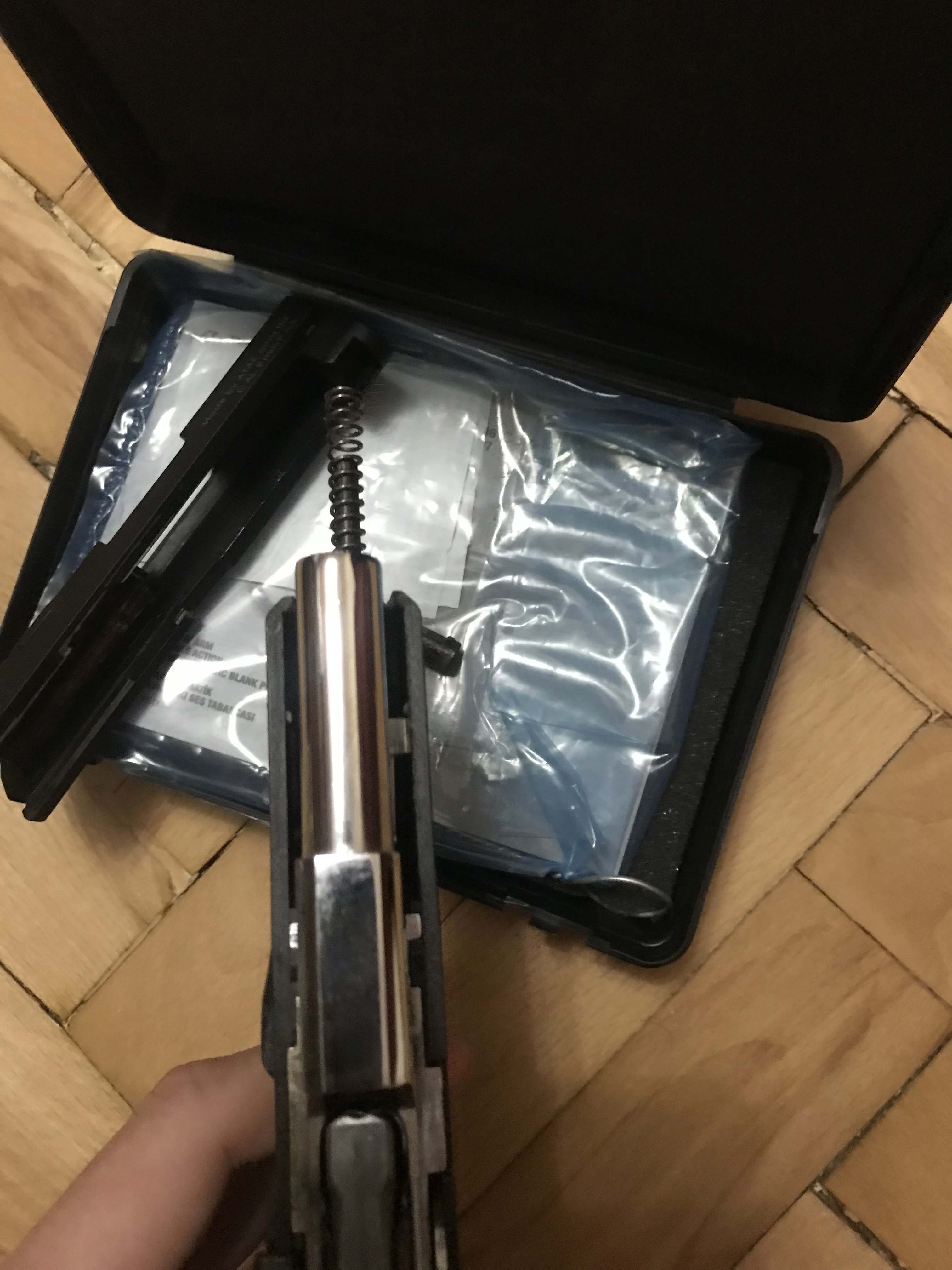 Там за патронником должен стоять рассекатель , длиной около 25-30 мм, а со стороны дульного среза штифт на глубине 12 мм +- 2 мм. Цена немного завышена. Если он новый , то не может стоить дороже 3500, если б/у ,то до 3000-х. Свою цену за ваш пистолет я предложил. Если будет интерес, обсудим в личке. С уважением.