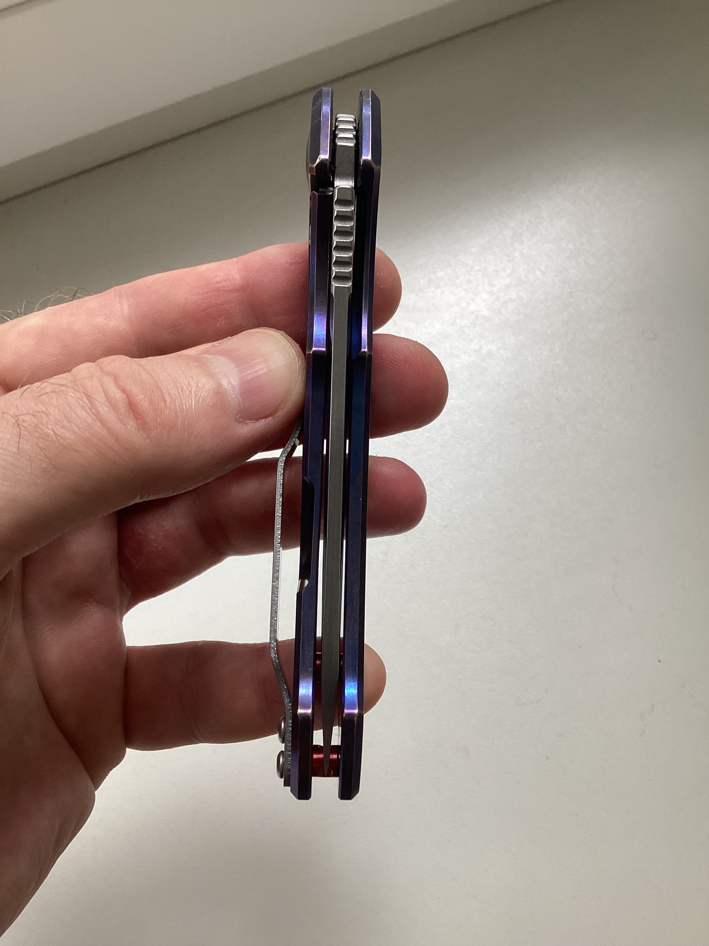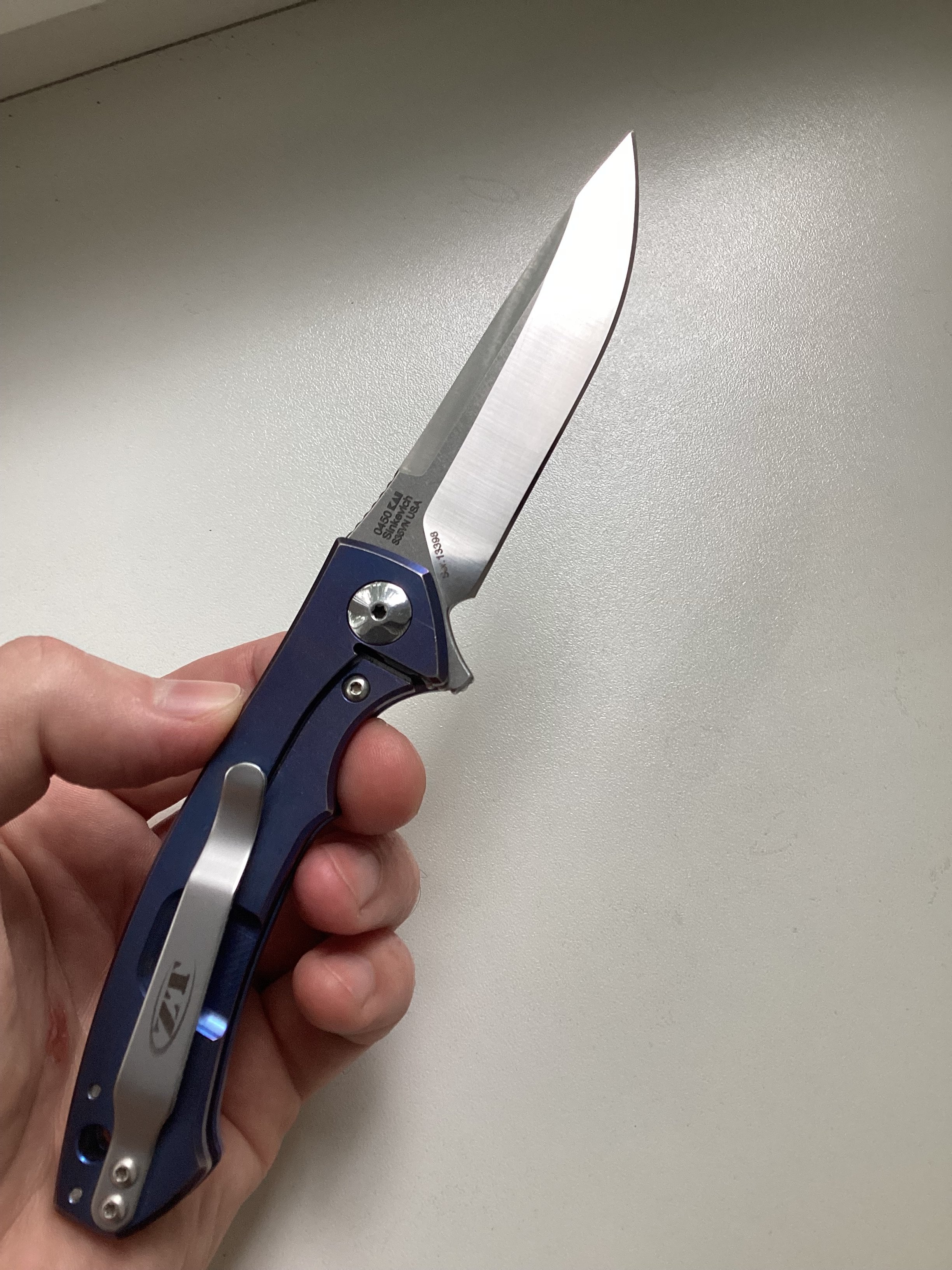 Вітаю, пропоную вашій увазі ніж ZT 0450 титановий фреймлок, невеликий 188мм, легкий 83г. Лезо з порошкової s35vn розміром 83мм. Стан б/в задовільний, був на кармані, але нічого тяжкого не робив. Лезо заточували один раз(ще доволі гострий), по руківʼю все добре. Без комплекту. Ціна 4500. Оплата картка, відправка НП. IMG_0138.jpeg