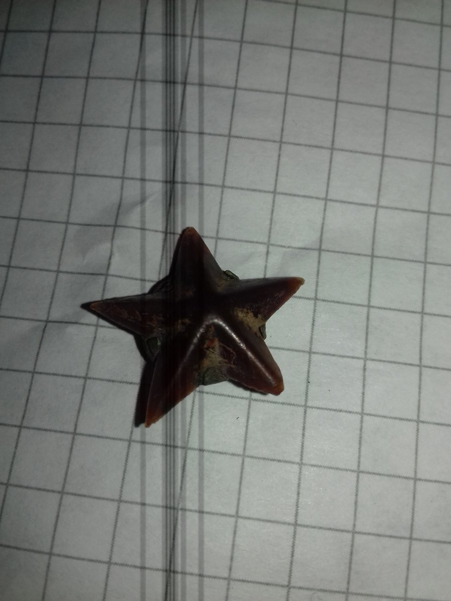 Кстати вычитал из чьих-то мемуаров, что советские солдаты часто из жестяных банок звёзды вырезали, как эта звёздочка с двумя отверстиями.